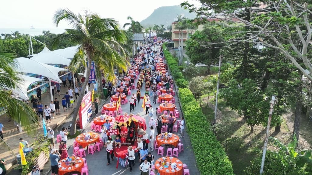 上千桌宴席沿街擺開,來自五湖四海的游客和當(dāng)?shù)貪O民們歡聚一堂,沐浴著星光與海風(fēng),從五柳紅古魚,到海膽海鮮飯,一道道漁家美食端上餐桌,讓食客品嘗舌尖美味,感受來自海陵島的獨特風(fēng)味。