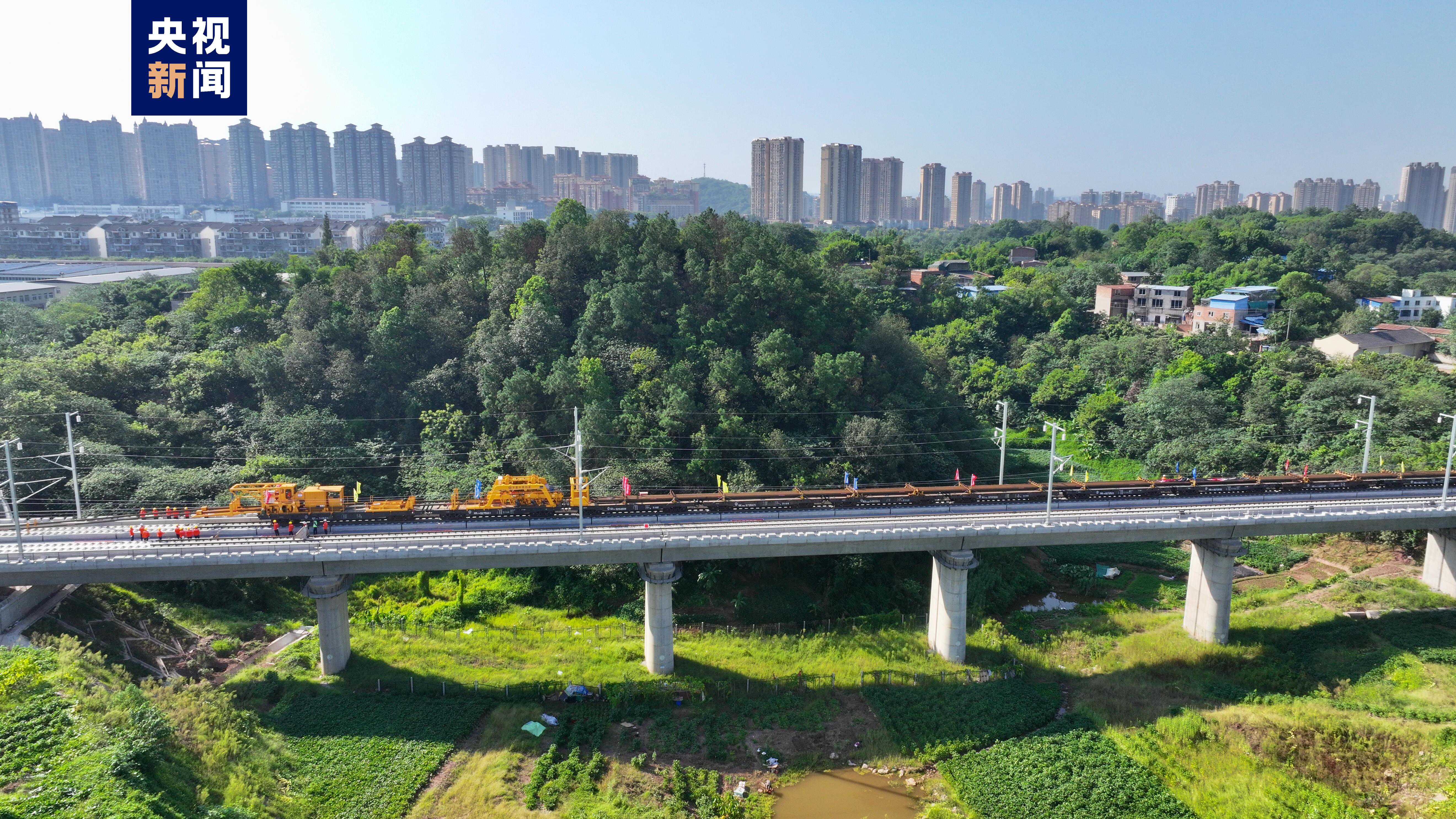 渝昆高鐵是全國鐵路“八縱八橫”主通道之一京昆通道的重要組成部分,渝昆高鐵川渝段位于我國重慶市和四川省境內(nèi),正線全長約292公里,設(shè)計(jì)時(shí)速350公里,全線已進(jìn)入鋪軌、線上工程及站房建設(shè)沖刺階段,此次鋪軌(含站線)總里程共約550公里,其中正線約528公里,站線約20公里,95組道岔等施工任務(wù)。
