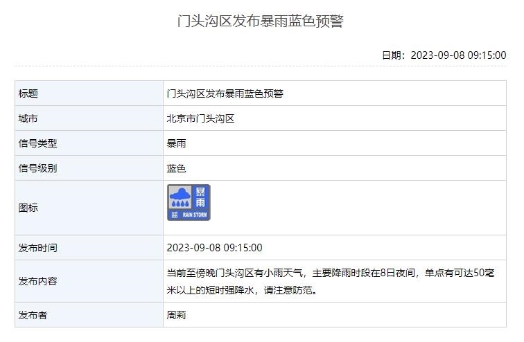 當(dāng)前至傍晚門頭溝區(qū)有小雨天氣,主要降雨時(shí)段在8日夜間,單點(diǎn)有可達(dá)50毫米以上的短時(shí)強(qiáng)降水,請(qǐng)注意防范。