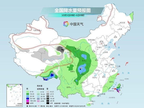 中國(guó)天氣網(wǎng)訊 今天(10月3日)白天,華西地區(qū)降雨將有所減少、減弱,但今夜起新一輪降雨過程又將開啟,部分地區(qū)有大雨,局地暴雨;同時(shí)青海、甘肅局地有暴雪或大暴雪,需注意防范。氣溫方面,東北地區(qū)等地未來三天將出現(xiàn)降溫。5日至7日,南方氣溫也將下滑,暑熱緩解。