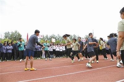 田徑比賽與呼啦圈傳遞比賽之后,便是速度與協(xié)調并重的集體跳繩比賽。大家的注意力集中在場上,為選手們鼓勁加油,選手們則全神貫注,誓要拿出最好成績。
