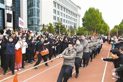 拔河是最后一個項目。賽場兩側人頭攢動、摩肩接踵,大家無不關注著這場團結與力量的比試。掌聲、加油聲、歡呼聲響徹云霄,在一場場激烈對抗中,全場氣氛一次次達到高潮。