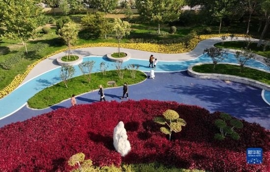 10月15日,市民在唐山市海港經(jīng)濟(jì)開發(fā)區(qū)一處街角公園休閑鍛煉(無人機(jī)照片)。