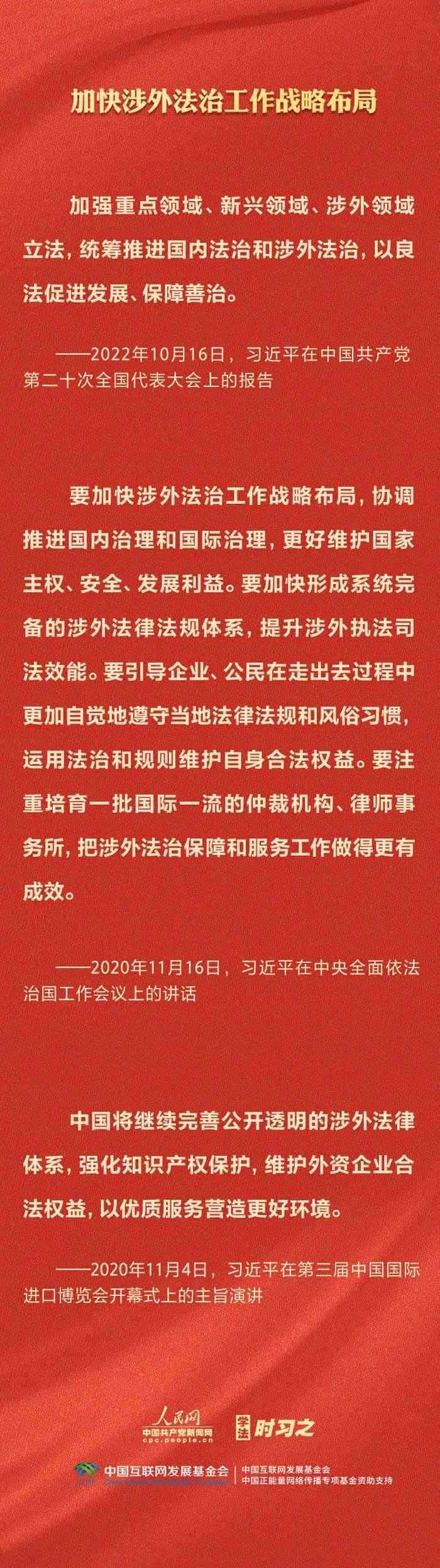 今年是貫徹落實黨的二十大精神的開局之年。中共中央政治局決定從今年4月開始,在全黨自上而下開展學習貫徹習近平新時代中國特色社會主義思想主題教育。習近平法治思想是習近平新時代中國特色社會主義思想的重要組成部分,人民網·中國共產黨新聞網推出學法時習之·學習習近平法治思想系列策劃,本篇聚焦“堅持統(tǒng)籌推進國內法治和涉外法治”。