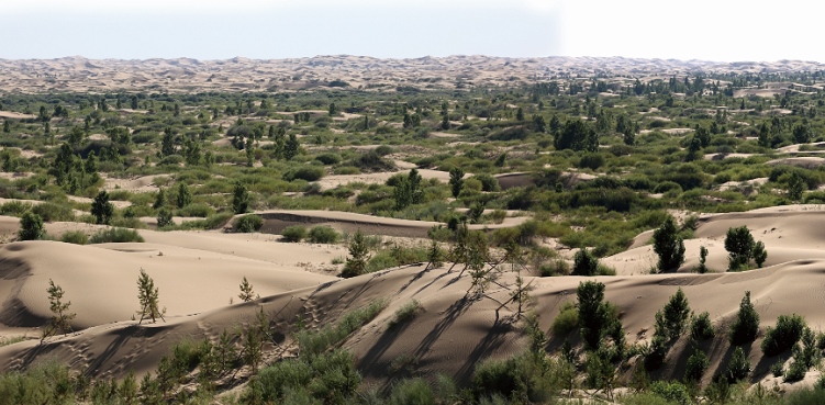河西走廊-塔克拉瑪干沙漠邊緣是“一帶一路”倡議的重要戰(zhàn)略通道,區(qū)域風(fēng)大沙多,植被稀疏,是北方主要沙塵源區(qū)?!叭薄惫こ倘髴?zhàn)役進(jìn)入實(shí)戰(zhàn)階段以來,億利庫布其治沙模式技術(shù)的推廣落地在河西走廊-塔克拉瑪干沙漠邊緣阻擊戰(zhàn)中也跑出了加速度。