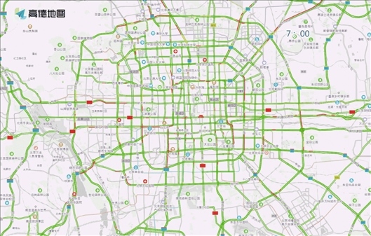 早高峰期間,二、三、四環(huán),東、西、北五環(huán),東、北六環(huán),菜戶營南路、通惠河北路、西直門北大街、德勝門外大街、圓明園西路至萬泉河路、阜石路、蓮石東路等道路進城方向,以及京藏高速、京承高速、京通快速、京港澳高速、機場高速等高速公路進京方向車流量較大,高峰時段為7:30至9:00。周一和限行尾號4、9的周三早高峰通行壓力將尤為突出。