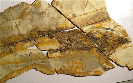 圖為此次發(fā)現(xiàn)的劍龍類恐龍化石。新華社記者曹國廠 攝