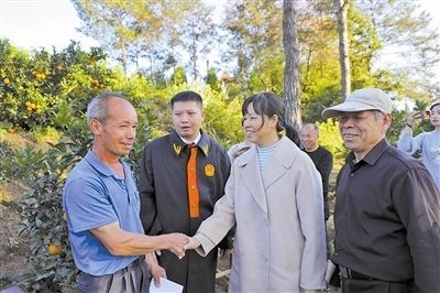 正值果園采摘農(nóng)忙時期,為保證群眾訴訟和農(nóng)忙“兩不誤”,近日,江西省寧都縣人民法院石上人民法庭在當(dāng)事人的臍橙園里,就一起民間借貸糾紛案進(jìn)行巡回審判。