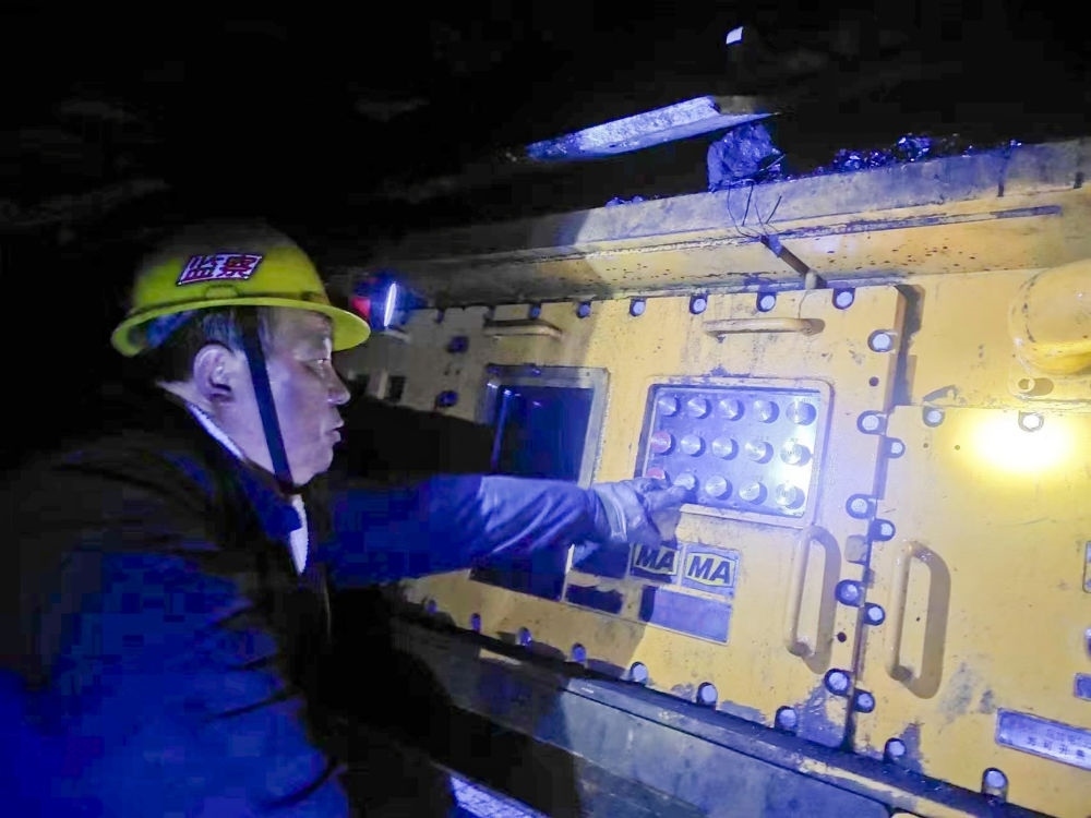 工人師善坤在操作采煤設備。新華社記者王怡靜 攝