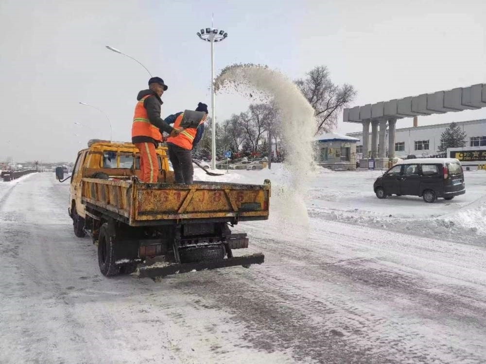 在雞西市,養(yǎng)路工人在進行清雪作業(yè)。受訪者供圖