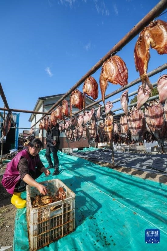 浙江省諸暨市白塔湖湖畔的村鎮(zhèn)居民有冬季曬魚干迎新年的傳統(tǒng)習俗。臨近年末,當?shù)卮迕裼貌稉频那圄~、鳊魚、白條魚等晾曬魚干,迎接新年、增收創(chuàng)收。
