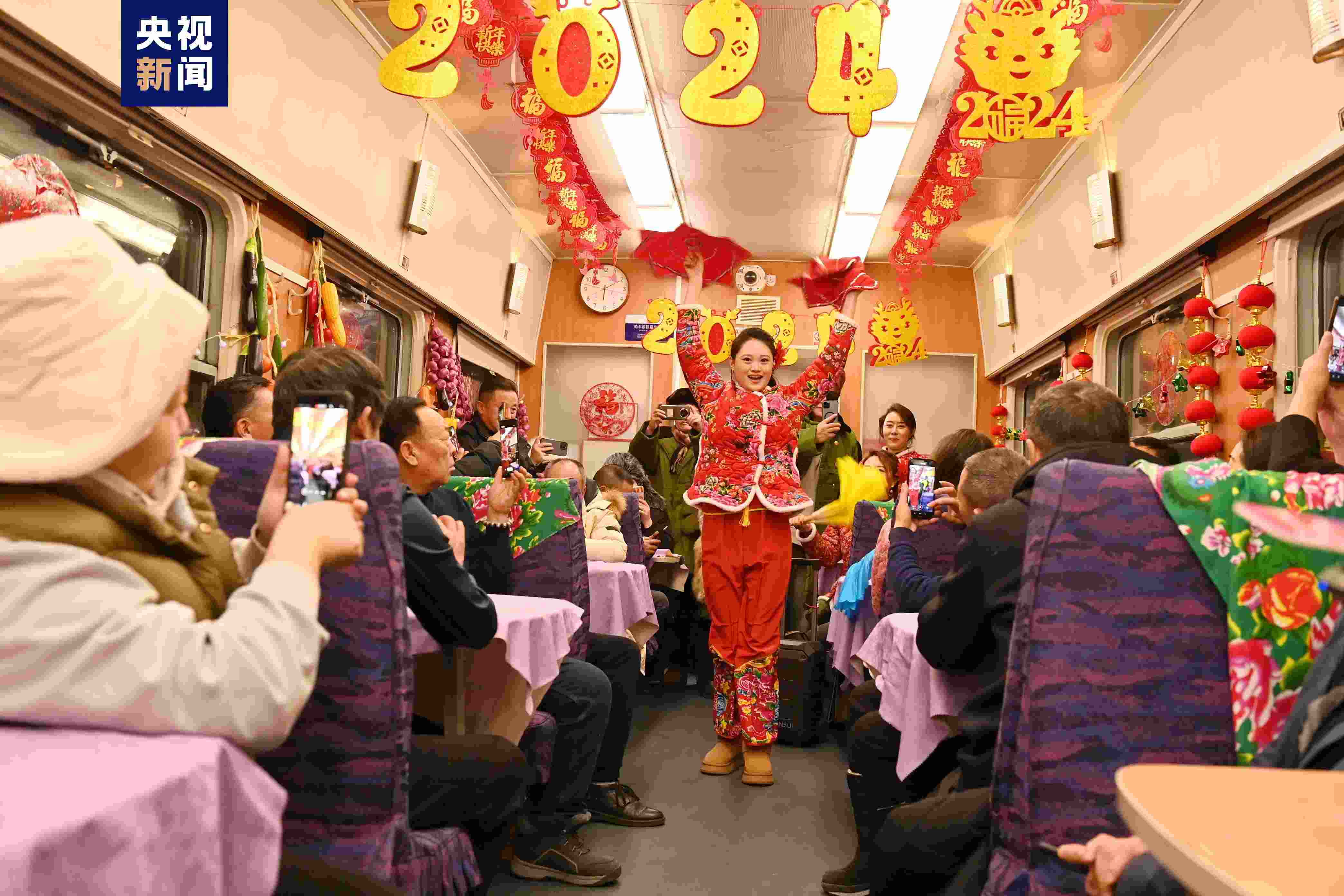 記者從中國鐵路哈爾濱局集團有限公司獲悉,首列東北民俗文化旅客列車著力呈現(xiàn)出有溫度、有煙火氣、可互動的主題形態(tài),更加注重氛圍營造與文化內(nèi)涵提升,嘗試突出對部分臥鋪車廂、餐車進行特色定制,車廂內(nèi)部裝飾包含“最北人家”“喜迎豐收”“跨年狂歡”等主題場景,加入了沉浸式互動演繹和東北農(nóng)家樂元素。
