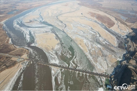 2023年12月24日,山西運城,黃河臨猗段出現(xiàn)流凌,吳王古渡拆除浮橋,流凌從缺口處緩緩通過。