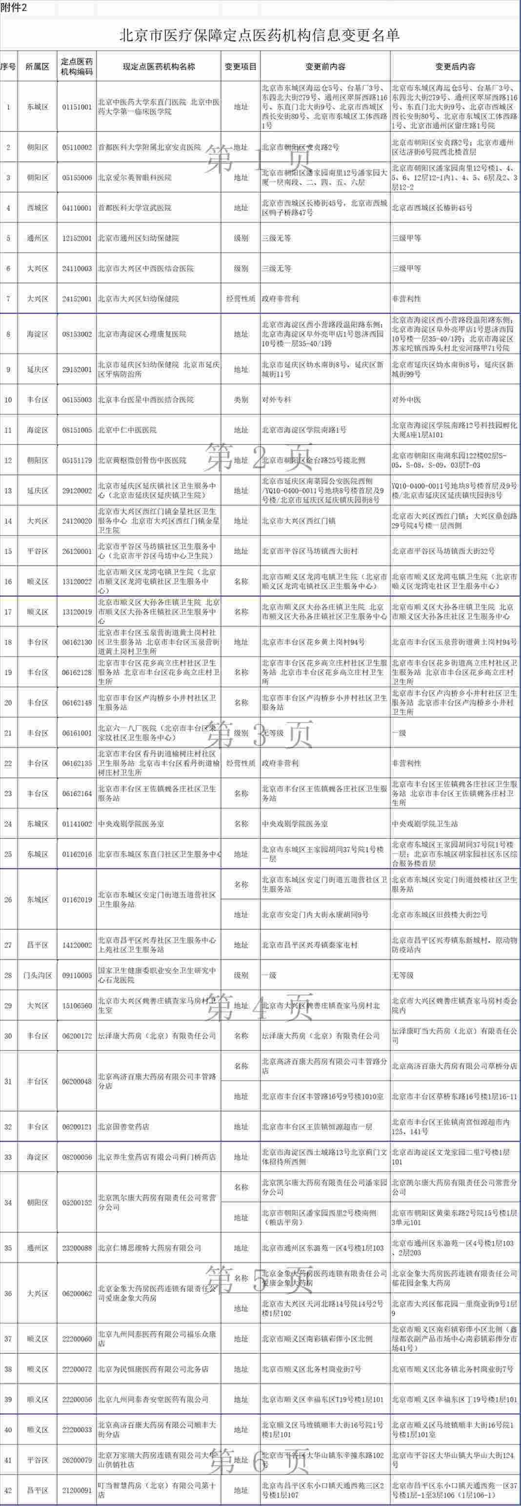 北京中醫(yī)藥大學(xué)東直門醫(yī)院等42家定點(diǎn)醫(yī)藥機(jī)構(gòu)申請信息變更,經(jīng)市、區(qū)醫(yī)保經(jīng)辦機(jī)構(gòu)審核,現(xiàn)決定對上述42家定點(diǎn)醫(yī)藥機(jī)構(gòu)的有關(guān)信息予以變更(見附件2)。