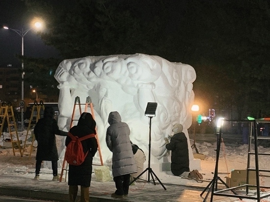 能夠與冰雪“親密接觸”,中國美術(shù)學(xué)院的熊竣苓要感謝剛剛在哈爾濱落幕的第十六屆國際大學(xué)生雪雕大賽。他所在的團隊由包括他在內(nèi)的4位南方同學(xué)組成,他們創(chuàng)作的雪雕作品《盤古開天》獲得了一等獎。這段比賽經(jīng)歷讓第一次去哈爾濱的熊竣苓非常難忘,“最近哈爾濱很火,雖然我是去參加比賽的,但能去哈爾濱一趟,也非常激動了。我記得我們從機場到酒店的路上,透過車窗看到了霧凇,一下子就讓我這個南方人感受到了北方冬天的美。”他回憶,做雪雕時,他和另外3位同學(xué)都既緊張又興奮,“我們都是第一次觸摸雪做雕塑,此前在學(xué)校練習(xí)時是用泥巴或石膏,跟雪是完全不同的質(zhì)感,所以過程中我們都小心翼翼,非常緊張;同時,我們都是第一次見到這么多雪,太激動了?!?/p>