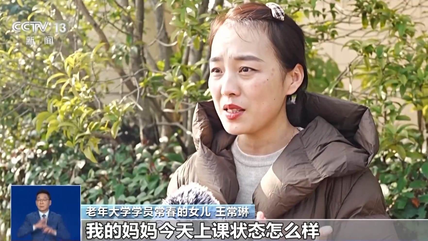 老年大學(xué)學(xué)員常春的女兒 王常琳:大家像關(guān)心孩子一樣,去關(guān)注我的媽媽站在哪里,我的媽媽今天上課狀態(tài)怎么樣。因?yàn)楣ぷ髅?,也沒有關(guān)注過媽媽的業(yè)余生活??吹揭曨l以后,我感覺媽媽完成了她兒時未完成的夢想,因?yàn)樗貏e喜歡聲樂,年輕的時候,因?yàn)檎疹櫸?,也沒有時間去學(xué)習(xí)聲樂。沒想到我的媽媽在這里找到了又年輕一把的感覺。
