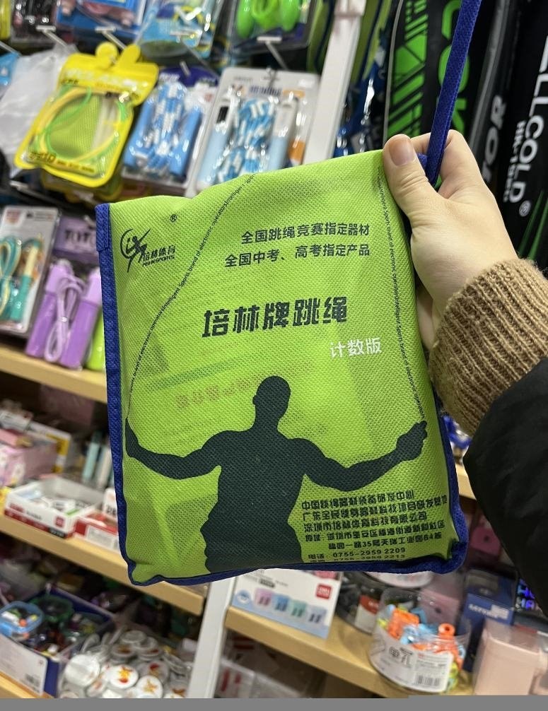 在重慶,記者以家長(zhǎng)身份走訪主城區(qū)多家中學(xué)周邊文具店,問及是否售賣“中考跳繩”時(shí),多名店主不約而同向記者推薦同一品牌——培林牌跳繩。