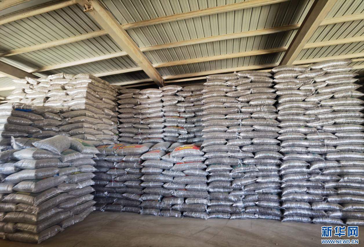 ??紅泥井村糧油交易綜合市場葵花籽庫房一角。新華網(wǎng)郝芳芳攝