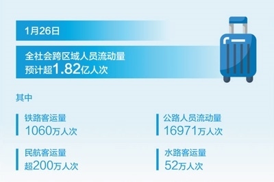 1月26日,2024年春運(yùn)大幕拉開。當(dāng)日全社會跨區(qū)域人員流動量預(yù)計超1.82億人次,其中全國鐵路預(yù)計發(fā)送旅客1060萬人次,公路16971萬人次,民航超200萬人次,水路52萬人次?!拌F路空水”密切合作,智能技術(shù)廣泛應(yīng)用,旅途服務(wù)貼心溫馨……各方協(xié)同,保障旅客安全順暢出行。