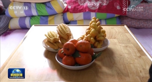 地震之后,馬興權(quán)一家六口人就住進(jìn)了這里的板房。一進(jìn)門,記者就看到,他家過年吃的米、面、油都備齊了,當(dāng)?shù)靥厣穆榛ê陀凸右舱ê昧恕qR興權(quán)說,前幾天,政府還為大家發(fā)放了生活物資和慰問金。
