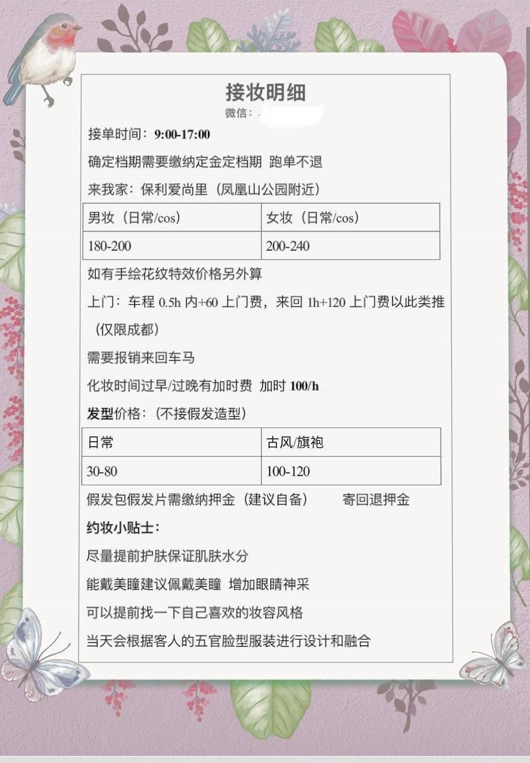 化妝報價表
