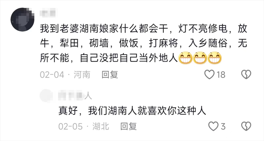 看到“女婿來(lái)丈母娘家的統(tǒng)一狀態(tài)”上熱搜,有的外地媳婦表示,自己也是一樣,在過(guò)年時(shí)充滿尷尬。