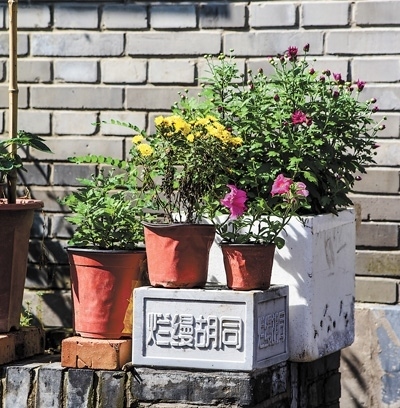 平整潔凈的石板路、頗具藝術風格的手繪涂鴉、設計精巧的花池……走進300多米長的爛縵胡同,隨處都有引人駐足的景致,透著閑適與寧靜。