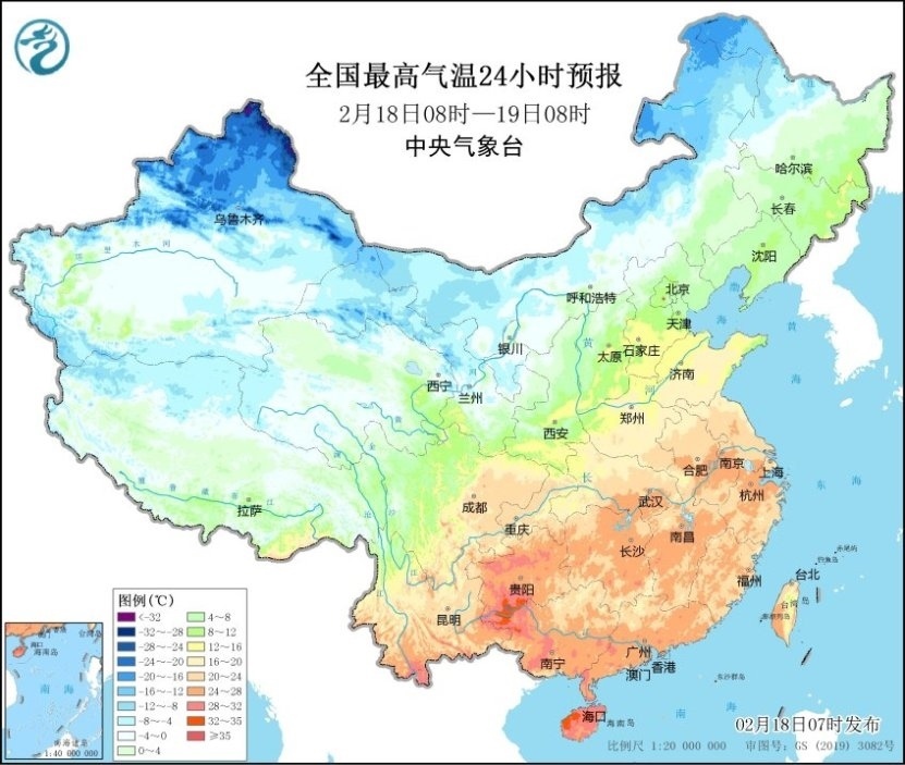預(yù)計2月18日08時至20日08時,新疆南疆盆地、內(nèi)蒙古大部、西北地區(qū)東部、華北北部、東北地區(qū)、黃淮、江淮、江漢、江南北部等地將降溫6~10℃,其中,南疆盆地西部、內(nèi)蒙古大部、東北地區(qū)大部等地降溫12~16℃,局地可達18℃以上。