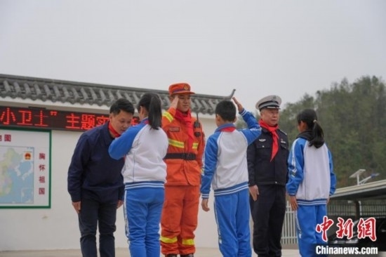 消防員、交警和電力工作人員聯(lián)合為學(xué)生代表頒發(fā)“安全小衛(wèi)士”證書,定期對學(xué)生傳授相關(guān)安全知識。李玲 攝