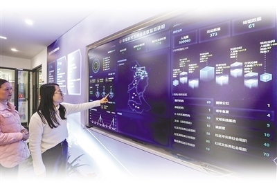 古蕩街道民生綜合體內(nèi),市民使用智慧屏查看民生綜合體相關情況。本報記者 江 南攝