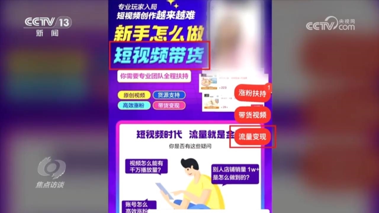 通過制作優(yōu)質(zhì)短視頻吸引粉絲并帶貨,這本身無可非議,但是在利益誘惑下,一些短視頻的博主卻不惜造假來擺拍各種博人眼球的視頻,獲取流量變現(xiàn),而有些短視頻帶貨的培訓(xùn)機(jī)構(gòu)推出的漲粉技巧更是包括“顛覆認(rèn)知”“制造對立”“抄襲素材”等不正當(dāng)手段。