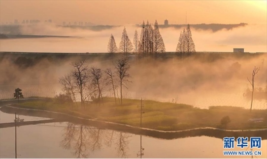3月20日清晨,在安徽省池州市,薄霧輕籠下的秋浦河,如夢似幻,與若隱若現(xiàn)的村莊、高鐵構(gòu)成一幅流動的水墨畫卷。