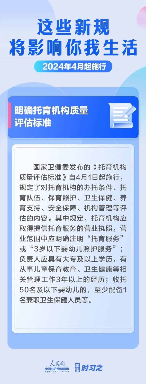 加強(qiáng)中央儲(chǔ)備棉管理;明確托育機(jī)構(gòu)質(zhì)量評(píng)估標(biāo)準(zhǔn);規(guī)范可再生能源電量收購(gòu)……4月起,這些新規(guī)施行,將影響你我生活。