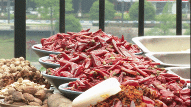 到了重慶,就不能不吃重慶火鍋。重慶火鍋主要是以油為主,輔以花椒、辣椒、豆母子、豆瓣,還有部分香料。光辣度就有微微辣、微辣、中辣、特辣好幾種,還有秘制的增香增辣配料,突出了鮮香麻辣的特點。