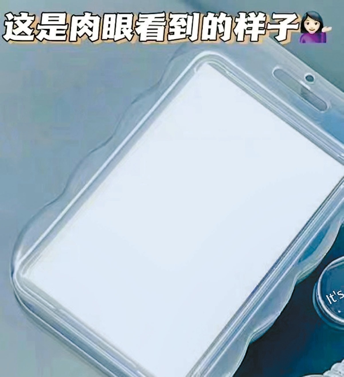 商家還表示,卡包中可以放上真實(shí)的飯卡等,遮蓋住手機(jī)的背面,手機(jī)正面的屏幕在外人看來,是純粹的白色,必須戴上眼鏡才能看到屏幕上的內(nèi)容。