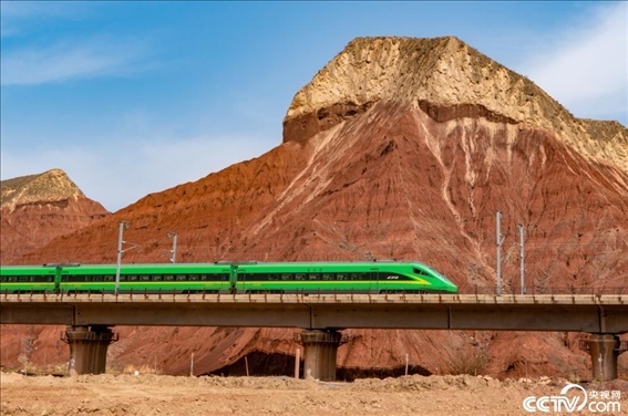 動車組列車疾馳在蘭新高鐵上,與錦繡山河構成了一幅幅優(yōu)美的動態(tài)畫卷。