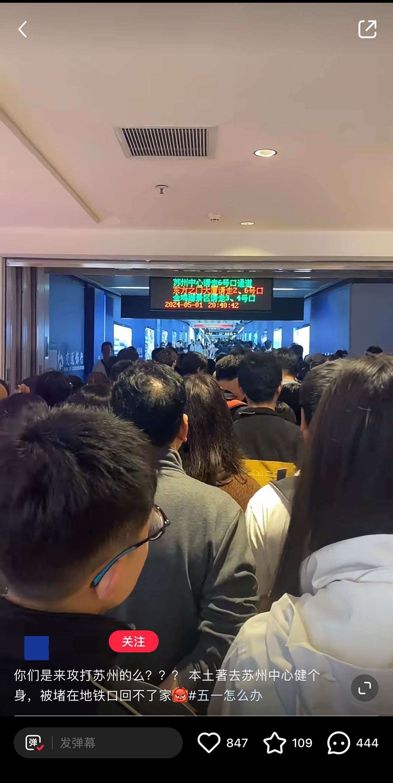 熱門旅游目的地的當?shù)厥忻駝t“叫苦不迭”。有蘇州的網(wǎng)友發(fā)布視頻稱自己出門健身,被堵在地鐵口“回不了家”。