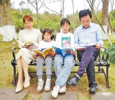 “開始看書啦!”晚上9點(diǎn),陳靜做完家務(wù),招呼丈夫賀瑋杰和兩個(gè)女兒到書架上各自取書,在客廳圍坐在一起,閱讀分享。這樣的親子時(shí)光,在重慶市榮昌區(qū)市民陳靜家已是尋常。兩個(gè)80后帶著兩個(gè)10后,每周一次家庭閱讀分享會,每年一份家庭心愿書單……一家人在書香中共同成長。