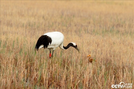 黑龍江省齊齊哈爾市扎龍國(guó)家自然保護(hù)區(qū),國(guó)家一級(jí)保護(hù)動(dòng)物野化的一對(duì)丹頂鶴夫妻成功孵化一個(gè)丹頂鶴寶寶,丹頂鶴夫妻蘆葦蕩里叼著食物喂小寶寶,丹頂鶴寶寶毛茸茸的非??蓯?ài)。