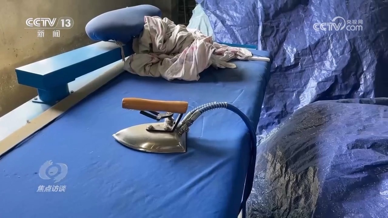 一進(jìn)門(mén),記者就看到現(xiàn)場(chǎng)有六七排衣架上都掛滿了衣服,負(fù)責(zé)人告訴記者,這些就是她們從自己的舊衣回收車(chē)間那邊挑過(guò)來(lái)的“精品單件”,然而記者看到,這些用床單包裹起來(lái),隨便堆在地上的舊衣服鋪滿灰塵、氣味難聞,衛(wèi)生環(huán)境臟亂差,更有甚者,在其他直播間,主播直播時(shí)當(dāng)場(chǎng)發(fā)現(xiàn)了蟲(chóng)卵。