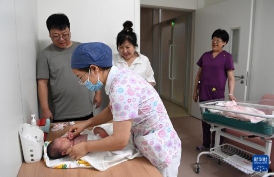 6月1日,在西安國(guó)際醫(yī)學(xué)中心醫(yī)院新生兒科病房,護(hù)士幫助新生兒翻身。