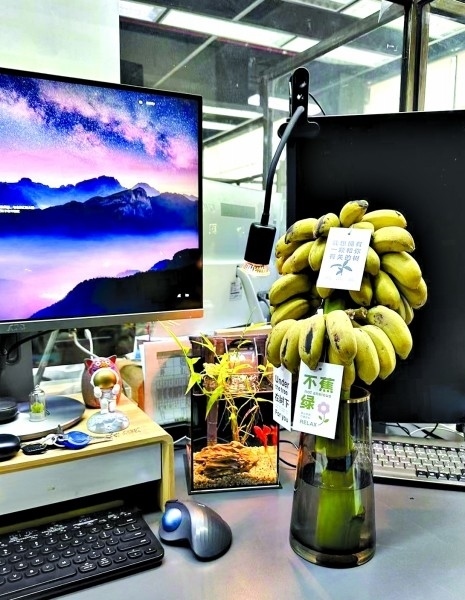 “現(xiàn)在大家工作都挺累的,職場(chǎng)里稍微有一點(diǎn)令人感到驚喜和有趣的話題,大家好像就會(huì)變得很開心?!眳芹谑且幻来畈┲鳎詮乃_始在辦公桌上養(yǎng)香蕉之后,單位的很多同事都會(huì)好奇地走過來瞧瞧。