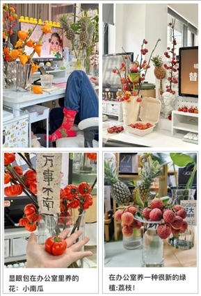 擺上香蕉,寓意“禁止蕉慮”;放上草莓,寓意“莓有煩惱”;南瓜在桌,寓意“萬事不南”;養(yǎng)上番茄,寓意“好運(yùn)翻番”……