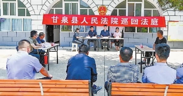 近日,陜西省甘泉縣人民法院道鎮(zhèn)人民法庭在審理一起侵害集體經(jīng)濟(jì)組織成員權(quán)益糾紛案件時(shí),考慮到本案為該區(qū)域多發(fā)常見(jiàn)類糾紛,遂將巡回審判庭搬進(jìn)道鎮(zhèn)五里橋村,在窯洞前就地審理。庭審中,法官充分聽(tīng)取雙方當(dāng)事人意見(jiàn),就爭(zhēng)議焦點(diǎn)進(jìn)行釋法明理。經(jīng)過(guò)一個(gè)多小時(shí)的調(diào)解,雖因雙方訴求差距過(guò)大未最終達(dá)成調(diào)解協(xié)議,但極大緩和了雙方矛盾。下一步,法官將繼續(xù)就雙方當(dāng)事人的訴求研判方案,組織調(diào)解。庭審結(jié)束后,法官向群眾介紹了本案相關(guān)的法律規(guī)定,就大家關(guān)心的法律問(wèn)題進(jìn)行答疑解惑。圖為巡回審判現(xiàn)場(chǎng)。(本報(bào)記者 劉輝 本報(bào)通訊員 李樂(lè) 攝)