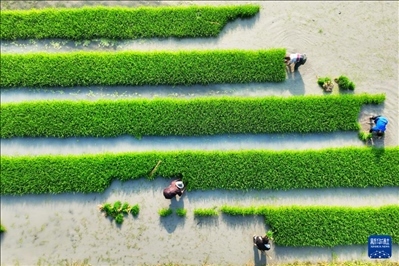 “三夏”時(shí)節(jié),綿陽(yáng)市安州區(qū)秀水鎮(zhèn)石紅村一派忙碌景象。插秧機(jī)在田間穿梭,村民周啟軍忙著補(bǔ)栽秧苗?!白罱疃啵凑铡?jīng)紀(jì)公司’安排,除了農(nóng)忙插秧,下個(gè)月還得安裝路燈、修補(bǔ)堰塘?!崩现苷f(shuō)。