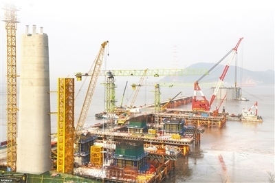 西堠門(mén)公鐵兩用大橋墩身施工現(xiàn)場(chǎng)。弋鵬麗攝