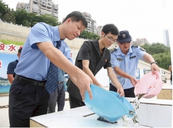 在活動現(xiàn)場,綜合審判庭庭長高志云小心翼翼地將魚苗投放進西江,約3.8萬尾魚苗成群結隊在西江“安家”,對西江受損的漁業(yè)資源生態(tài)環(huán)境起到良好的修復作用。碧水藍天,山河向美,江湖魚躍,一幅生態(tài)宜居的美好畫卷在人們心中徐徐展開。