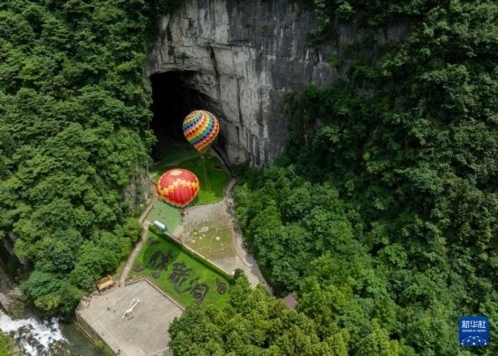 8月4日拍攝的騰龍洞景區(qū)(無人機照片)。