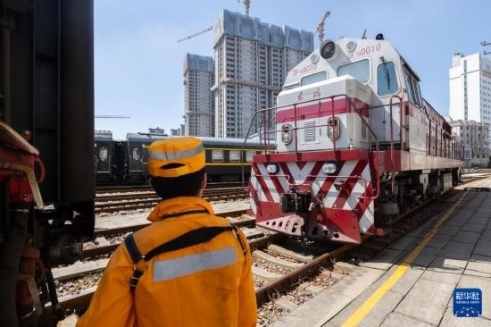 近期,上海持續(xù)高溫天氣。在中國鐵路上海局集團(tuán)有限公司上海站運轉(zhuǎn)車間,調(diào)車員冒著高溫堅守崗位,確保暑運列車運行安全。