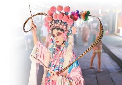 豐富文旅業(yè)態(tài)戲曲演員在磁器口古鎮(zhèn)街頭表演。磁器口古鎮(zhèn)管委會供圖